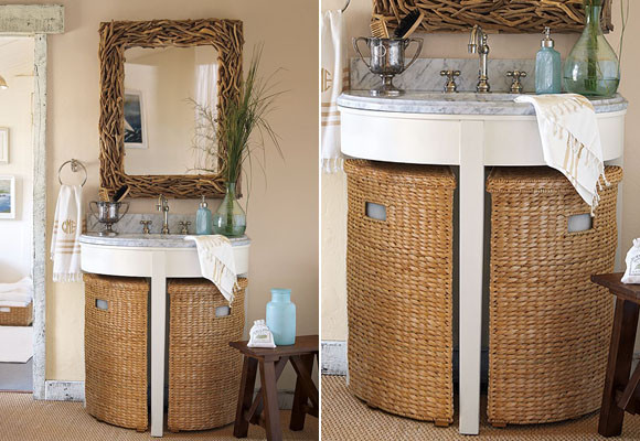 La primera es la colocación de unos cestos a medida que puedes utilizar para la ropa sucia, o para guardar toallas, albornoces…