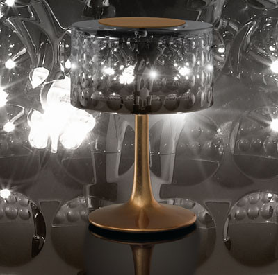 El cristal de bohemia tallado de su pantalla juega con los reflejos de la luz a través de su forma logrando transmitir un ambiente alegre y distendido.