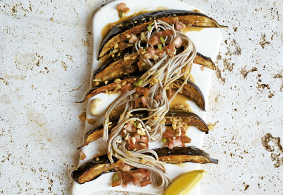 BERENJENA ASADA CON FIDEOS DE SOBA