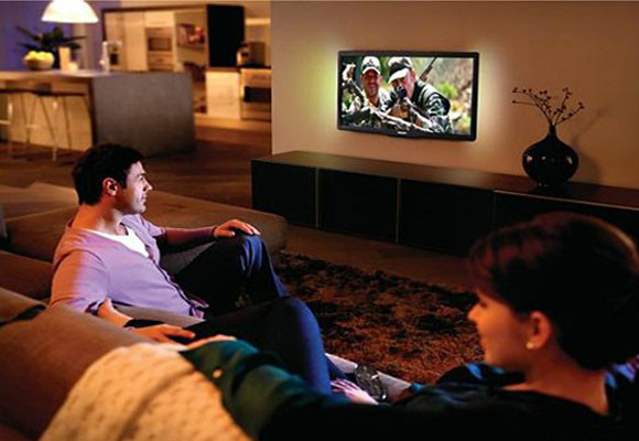 Pues bien, sólo en el caso de encontrarte a la distancia mínima, puedes plantearte ver una película en la tele completamente a oscuras. El resto de los casos y cuando ves la televisión de forma general (no una película) es preferible disponer de una iluminación ambiente en la parte trasera del televisor.