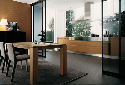 En ausencia de una estancia de la vivienda dedicada al comedor, suele ser la cocina la que está dotada de los muebles específicos a este efecto, pero como en este caso, podemos colocar algún elemento divisorio que separe visualmente las dos zonas de un mismo ambiente.