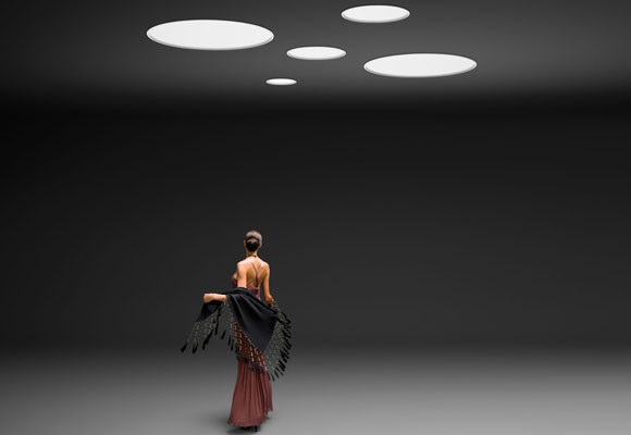 Los tres formatos disponibles, 123, 60 y 35 cm de diámetro, se combinan a placer, jugando de forma sorprendente con el efecto de agujerear el techo, como secuencia en los pasillos, haciendo una composición de los tres tamaños al disponer de espacios generosos, o bien como única fuente de luz cuando conviene focalizar un centor de atención.
