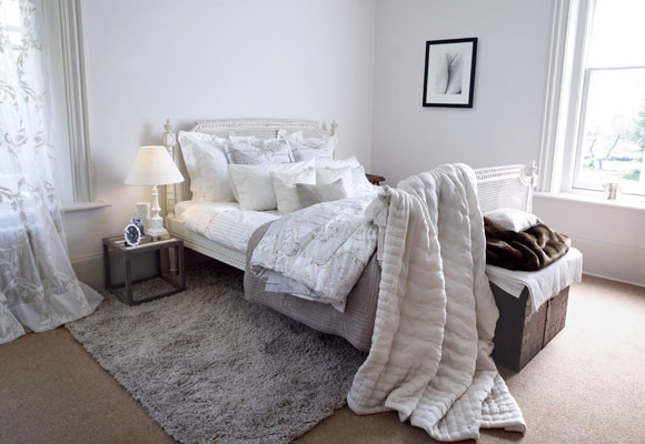 Los bebés hacen que todo parezca más dulce, más tierno y más delicado, y quizá sea por eso por lo que la cama se ha vestido con textiles en tonos muy claros, en perfecta armonía con los que visten la cuna, todos ellos en colores blancos, grises y beiges y con complementos y plaids de piel, para dar un toque cálido y envolvente a la vista.