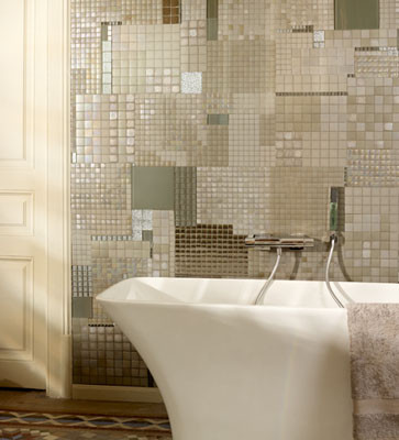 Con el revestimiento de paredes Mosaico Hisbalit, el espacio se trasforma en brillante y sofisticado.