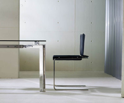 Su simple estructura metálica le aporta una gran ligereza visual apoyada por unos finos elementos de cuero. Todo ello le proporciona las cualidades necesarias para convertirla en una pieza atemporal.