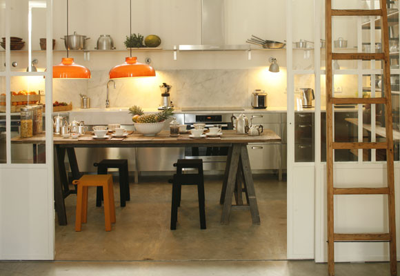 Junto a esta sala de estar se encuentra la cocina, y tanto la sala como la cocina pueden alquilarse puntualmente para eventos, fiestas o presentaciones.