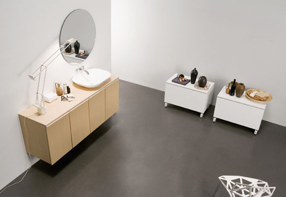 Las imágenes que os mostramos aquí son un buen ejemplo de ello. En la imagen superior veis un cuarto de baño austero en cuanto a contenido y de sensación muy aséptica, sin embargo, en la imagen inferior podéis ver como el interior de los muebles está diseñado para poder ocultar todos nuestros objetos personales.
