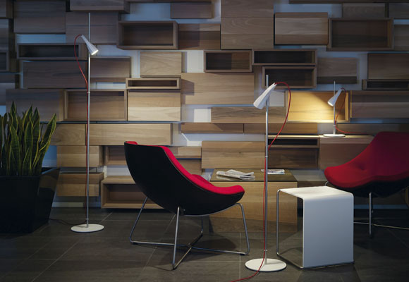 La colección incluye varios modelos de lámparas, de pie, de sobremesa o de pared, y cada uno de sus elementos están disponibles en muchos acabados; aluminio, blanco, negro… y otros más especiales como el naranja, amarillo, verde y turquesa.