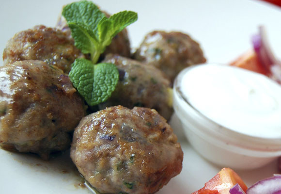 KOFTA CON SALSA DE YOGUR Y ENSALADA DE TOMATE