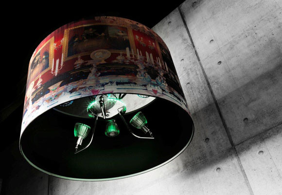 Su origen, que es tan curioso como su apariencia, proviene de la visita de una joven diseñadora inglesa a los interiores de un castillo en Notthingham, allí quedó cautivada por un magnífico lienzo que recreaba una escena de estilo barroco. Presa de esta imagen, propuso a Dresslight la idea de plasmarla en una tela de seda natural y vestir con ella una luminaria.