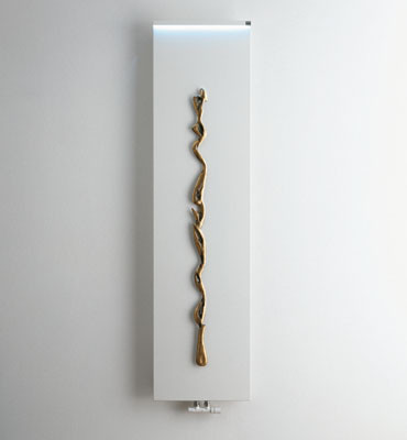 Sólo se fabricarán 100 unidades de la serie. 50 radiadores del Runtal Anima con fondo blanco y escultura de latón y 50 de fondo de acero inoxidable satinado con escultura en aluminio. Todas las piezas estarán numeradas.