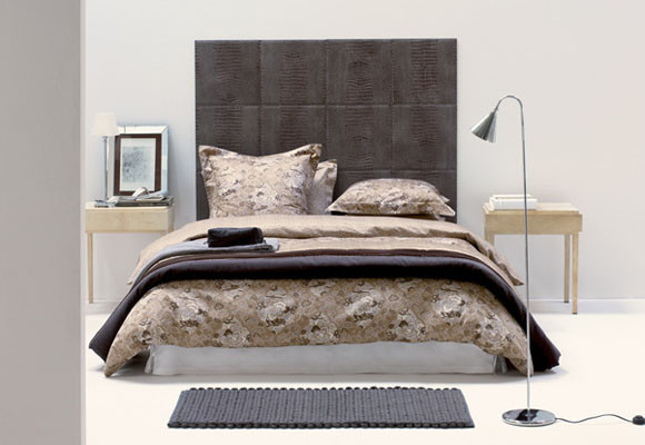 En la primera imagen se trata de un dormitorio armónico, de tendencia actual, muy cercano al  minimalismo. El cabecero tapizado en piel marrón formando casetones queda perfectamente integrado con esta decoración.