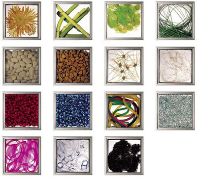Los materiales sintéticos que conforman el espacio interior están sumergidos en un líquido conservante y protector, que neutraliza los agentes bacterianos y evita posibles condensaciones. El líquido enfatiza los objetos del interior aportando volumen y transparencia.