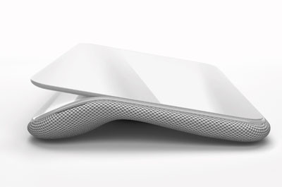 El Comfort Lapdesk presenta un soporte firme en 4 costados y un diseño que protege del calor. La textura calada de la parte inferior y una cámara de aire entre la base de la plataforma y el soporte superior suponen un práctico método para minimizar el calor. Asimismo, en lugar de tener una superfície que abarque la plataforma entera contra el cuerpo, una base arqueada de 4 soportes es el único punto de contacto con las piernas, facilitando así la circulación del aire.