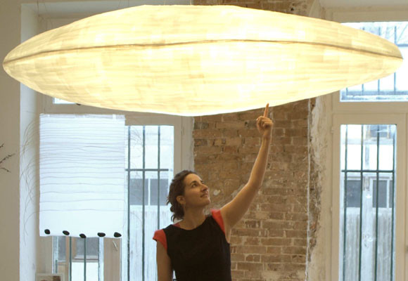La diseñadora utiliza la técnica del papel japonés y crea lámparas decorativas que recrean elementos naturales como las nubes, la luna, el sol… Haciendo de sus luminarias piezas que evocan calma y serenidad.