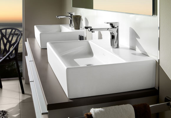 Memento destaca por su versatilidad, por ello Villeroy & Boch ofrece el lavamanos en diferentes tamaños, uno tan reducido que se adapta perfectamente a los baños más pequeños.