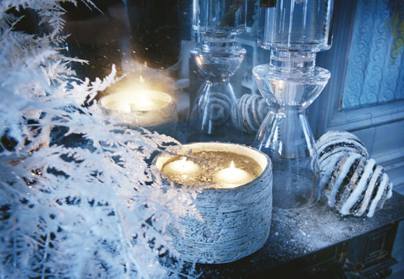 Al lado de esta decoración fría y blanca, la cálida luz de las velas se vuelve más profunda y sofisticada, y le da un punto misterioso a los ambientes navideños.