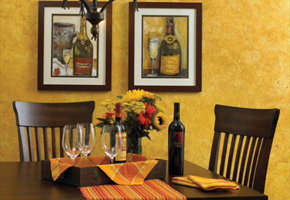 Una vez mezclada la pasta, puede extenderse con espátula de plástico o de metal. La rugosidad de la superficie dependerá de nuestros gustos; podemos extender la pasta y dejar las aristas, o bien alisarlas suavemente con una llana de goma o una brocha húmeda cuando la pasta esté a medio secar. Es conveniente intentar cruzar las pasadas de la espátula para que no todas lleven la misma dirección, lo que daría lugar a un efecto extraño. Este tipo de acabados son muy adecuados para paredes deterioradas o con desperfectos; cuando la pasta esté perfectamente seca, la podemos proteger aplicando una mano de látex (fijador para paredes) rebajado con agua o una cera incolora especial para este tipo de acabados.
