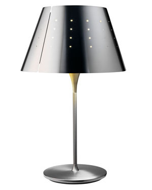 Quepí Due es una familia de lámparas con doble tulipa en acero inoxidable, de espesor extra fino y cristal interior matizado. Tienen una estructura metálica con terminado en níquel mate y las hay en tres versiones: de techo, pie y sobremesa.