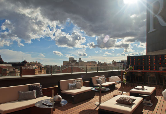Desde la terraza del hotel, los huéspedes pueden admirar maravillosas vistas del skyline de Barcelona, además de disfrutar de la armonía de un mirador con preciosas cascadas.