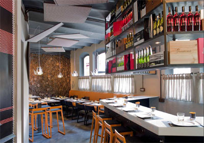 El espacio está ubicado en el semi sótano del particular edificio modernista del que os hablábamos el otro día. El espacio destinado al restaurante se distribuye a través de tres salas intencionadamente diferenciadas en lo que a interiorismo se refiere, pero con un hilo conductor, los utensilios gastronómicos que se empleaban a primeros de siglo.