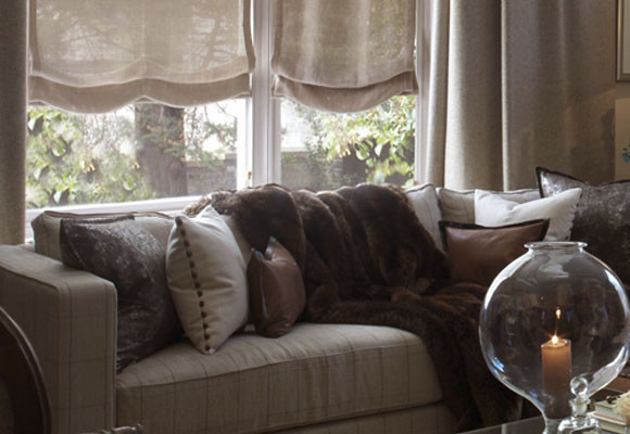 Algunos complementos como el plaid de suave piel o los cojines de cuero o ante se encargan de transmitirnos una agradable sensación cálida e invernal. Apetece sentarse en ese sofá y cubrirse con la manta y dejar pasar las horas...