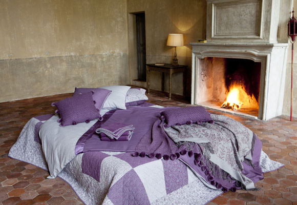 El ya habitual patchwork de Textura se presenta de nuevo en las colchas de Dress up your home!, mezclado con diferentes materiales, como lino, algodón, terciopelo, etc. En marino y vino, los modelos Lasa y Mana, confeccionados en algodón 100%, representan el estilo rústico que ha inspirado el nuevo catálogo de la firma, ambientado en un castillo típicamente francés. Ambos modelos se presentan con sus fundas de cuadrante a juego para completar el look hibernal de la cama.
