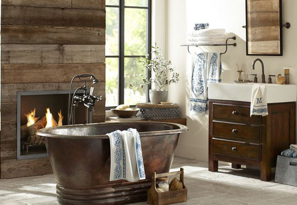 Un baño frente a la chimenea