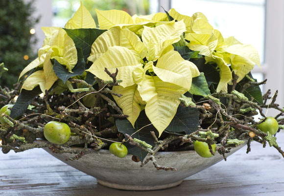 Estamos a escasas horas de la celebración de nochebuena, y si todavía no has pensado cómo decoraras el centro de la mesa, es el momento de ponerte manos a la obra. Te proponemos darle un toque rústico a tu hogar con estas ponsettias amarillas, que crearán un ambiente cálido y alegre para las celebraciones.