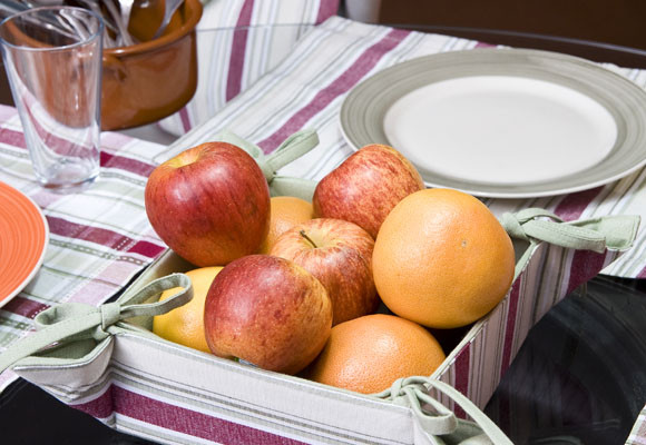 Un juego de textiles de cuadros, un centro de mesa a base de frutas, una cazuelita de barro para los tenedores… y el resultado es que el veis en las fotos, una mesa absolutamente sencilla y al mismo tiempo llena de detalles.